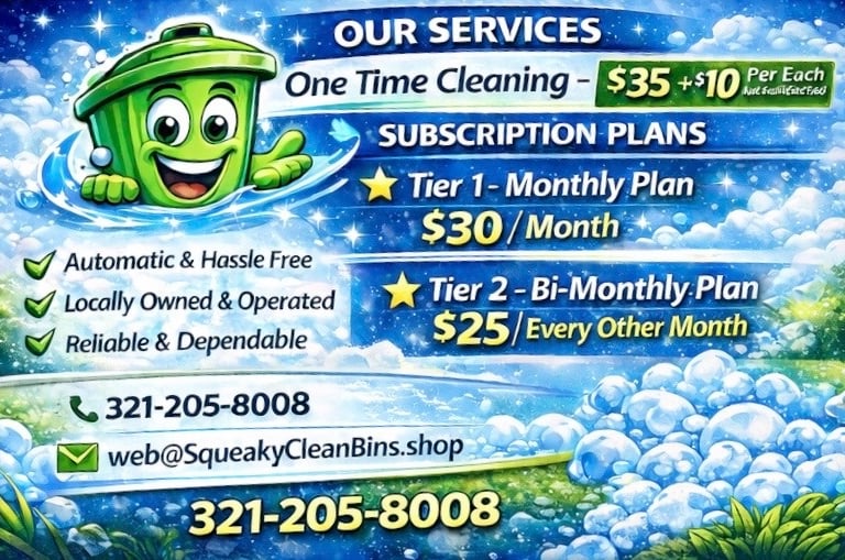 One-Time Cleaning $35 + $10 each additional can